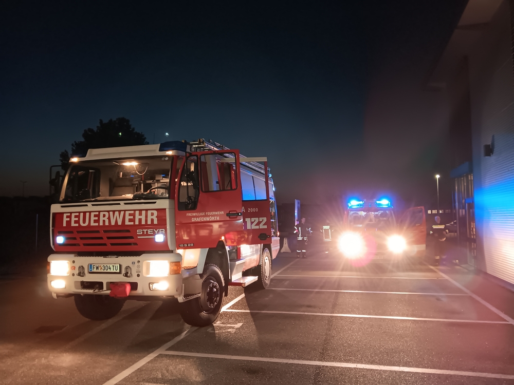 Zur Auslösung einer Brandmeldeanlage wurden die Feuerwehren Grafenwörth und Jettsdorf am Abend des 25.06.2024 in den Grafenwörther Gewerbepark alarmiert. Vier Einsatzfahrzeuge machten sich kurz danach auf den Weg, während der Fahrt rüsteten die Feuerwehrleute zur Sicherheit die Atemschutzgeräte aus.